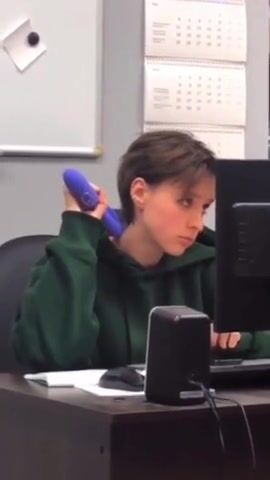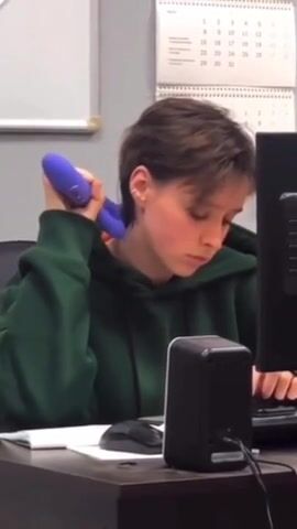 Watch Wtf girl, bringing your dildo to work huh? Lol. Seen Only on ViralPornhub