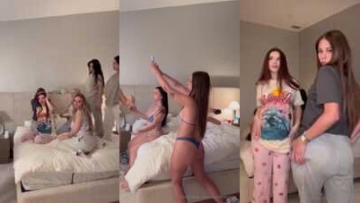 In this steamy clip, a hot girl flaunts her curves in a cozy bedroom setting. She strikes playful poses, showing off her toned legs and sexy lingerie. Her friends watch and join in, creating a lively and seductive atmosphere. Get ready for some serious eye candy and naughty fun!