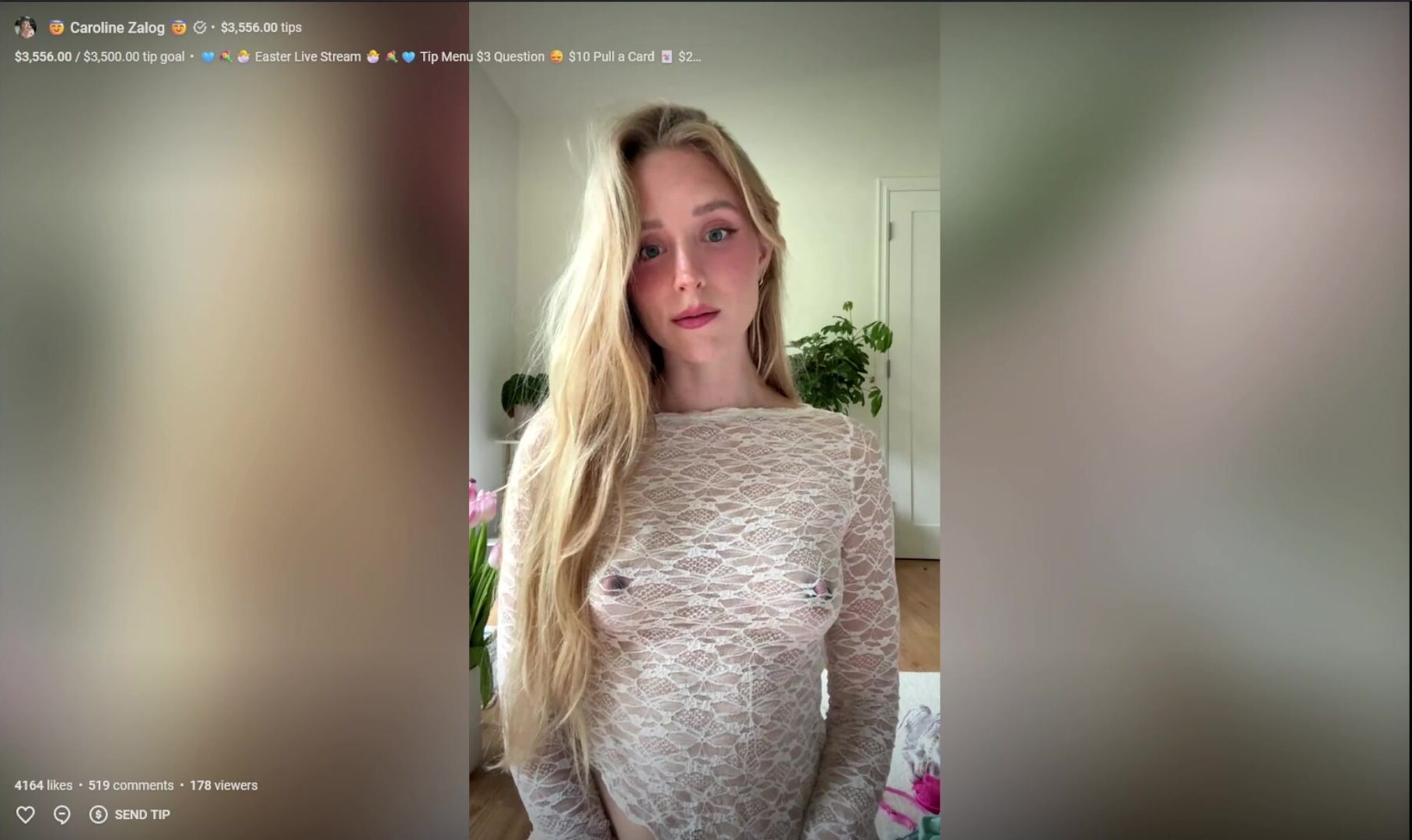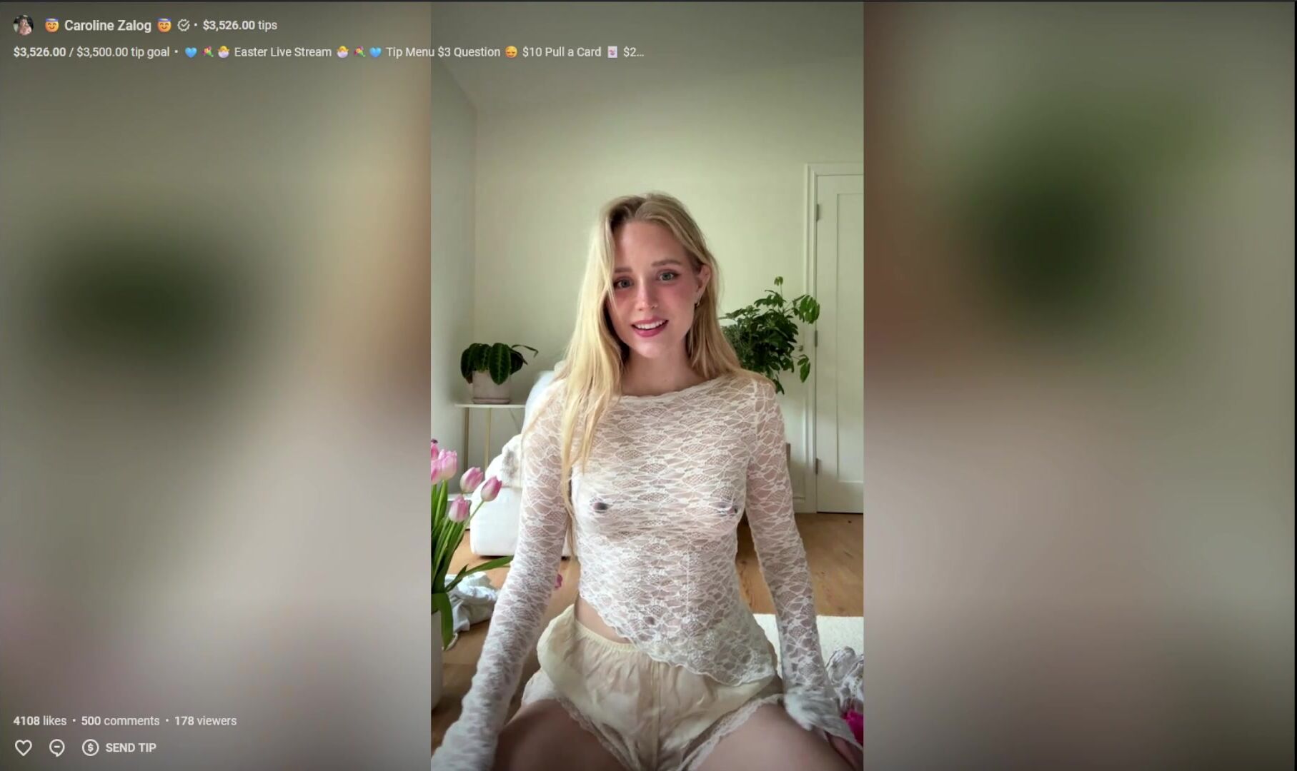 Caroline Zalog In Sheer Lingerie During Easter Live Stream