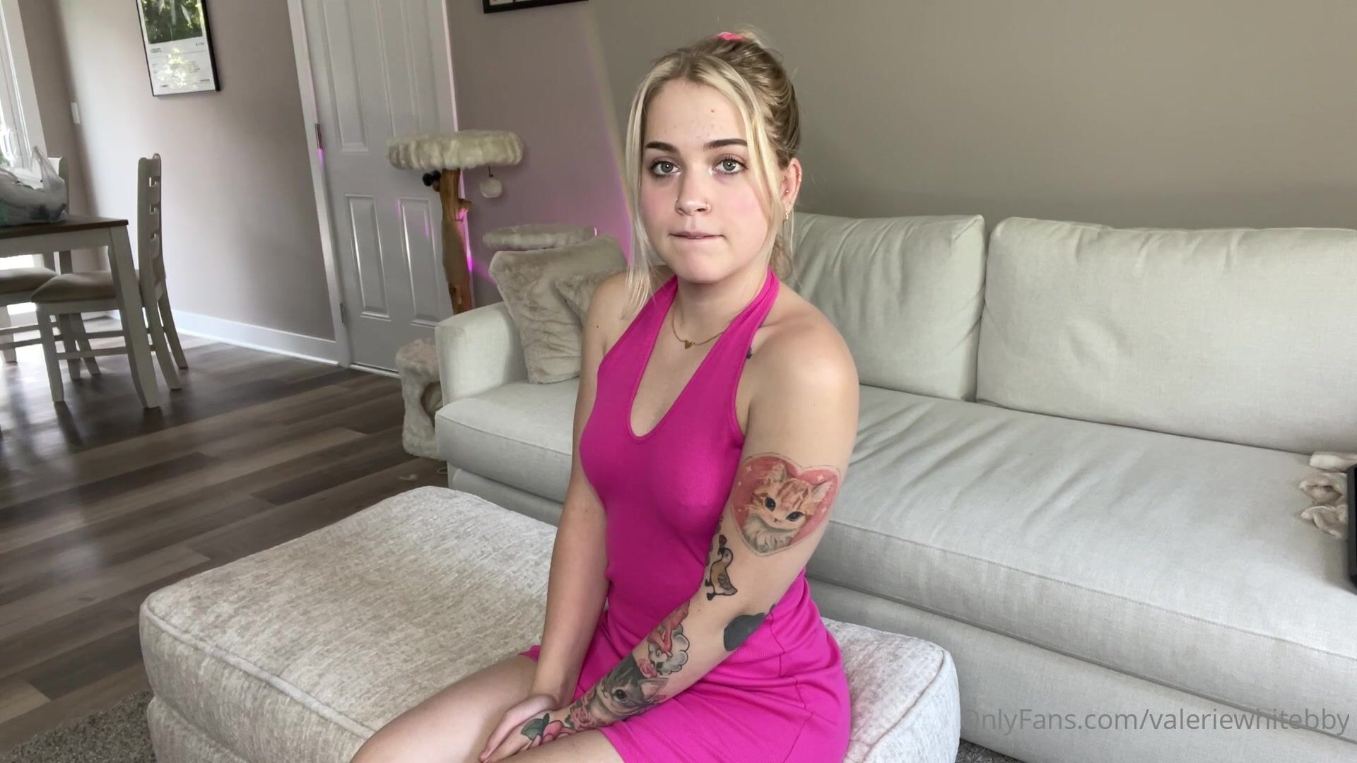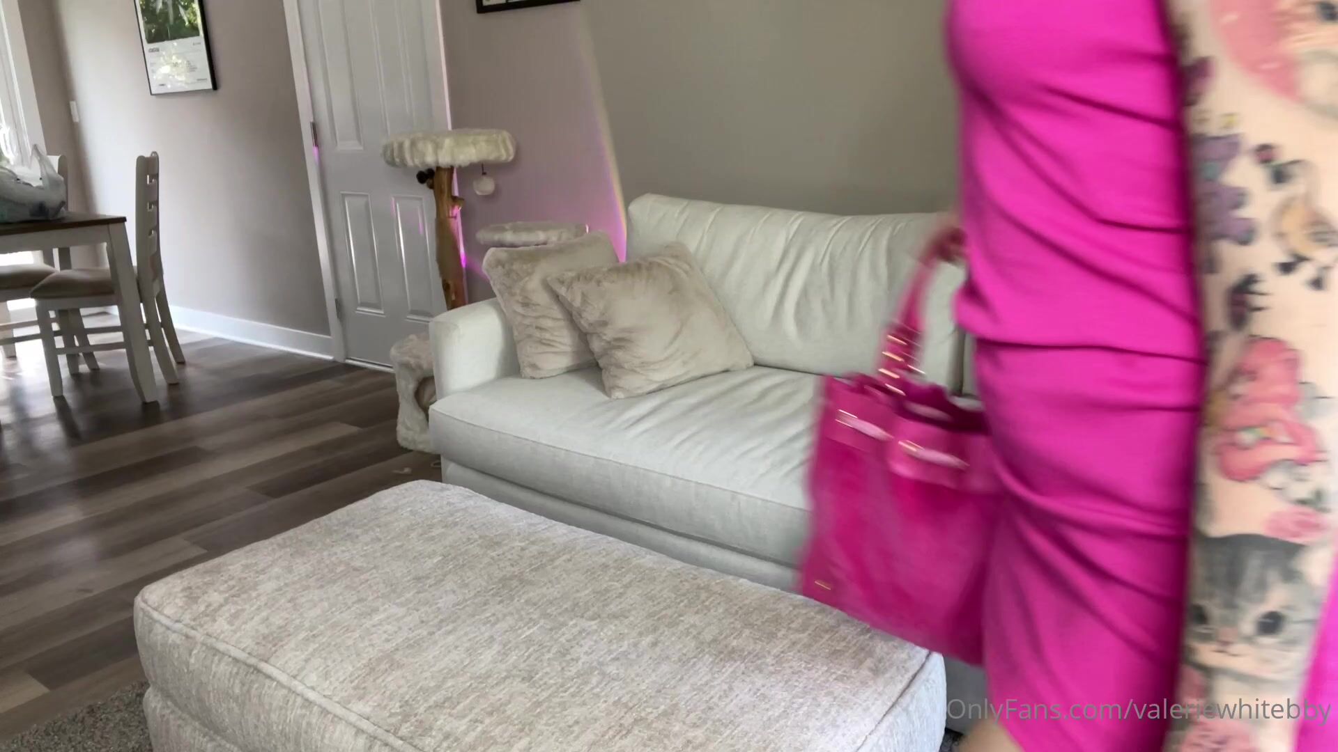 ValerieWhitebby in a pink bodysuit teases her perfect ass and feet in an exclusive OnlyFans video that's pure eye candy.