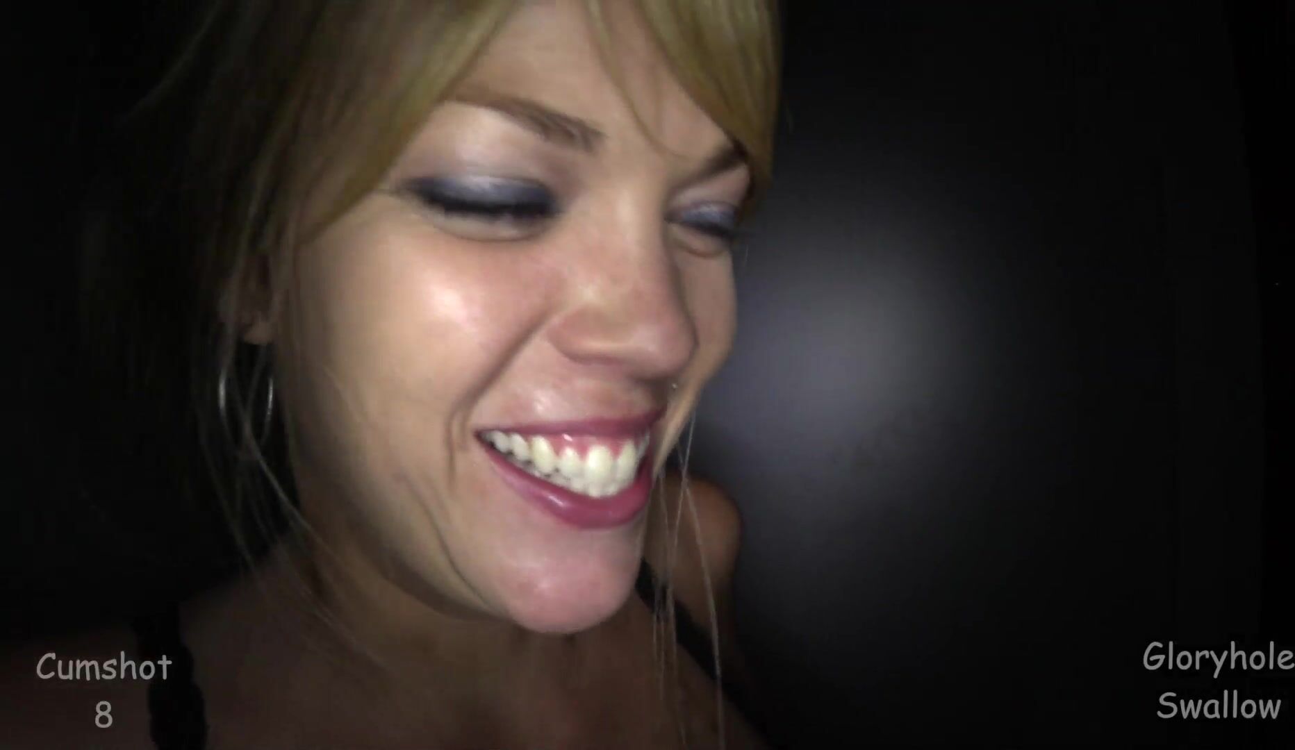 Kate's First Gloryhole Video Blonde Babe Gives Messy Blowjob and Swallows Cumshot