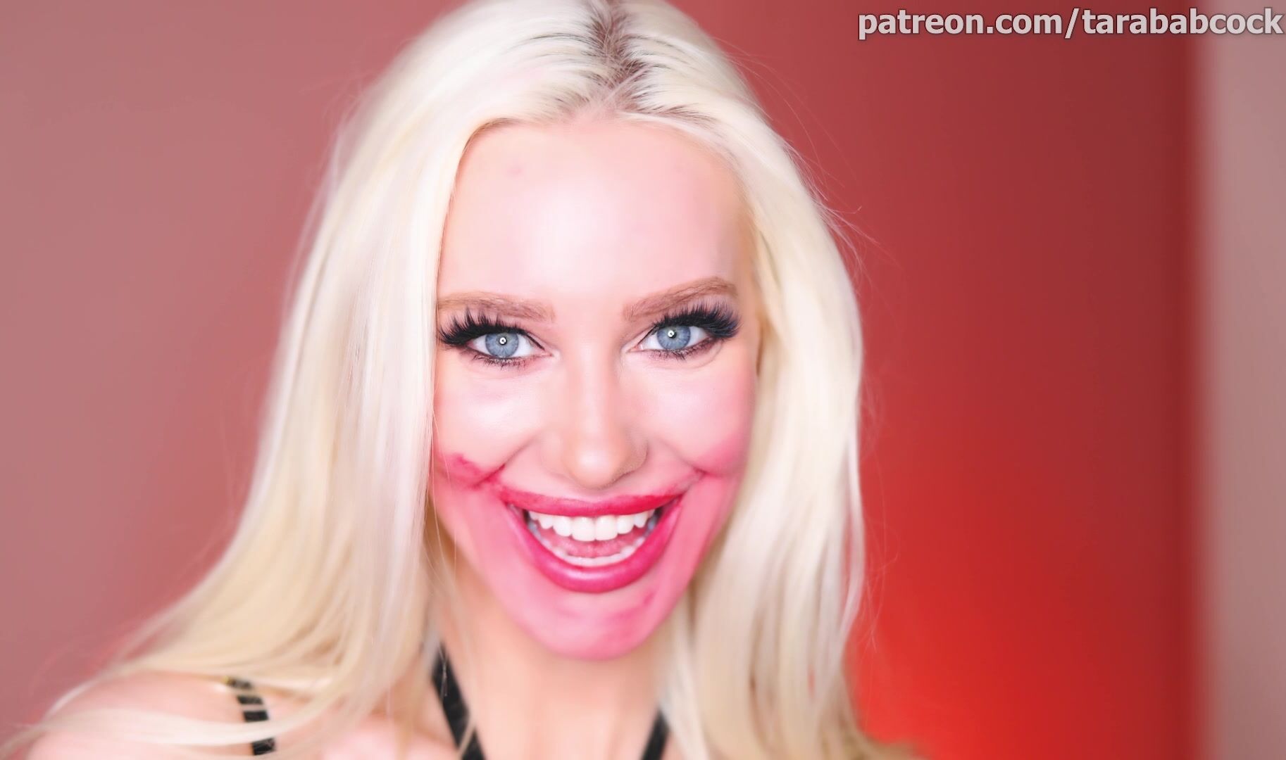 Curvy blonde TaraBabcock teases in black bondage lingerie, showing off her figure in this Patreon video.