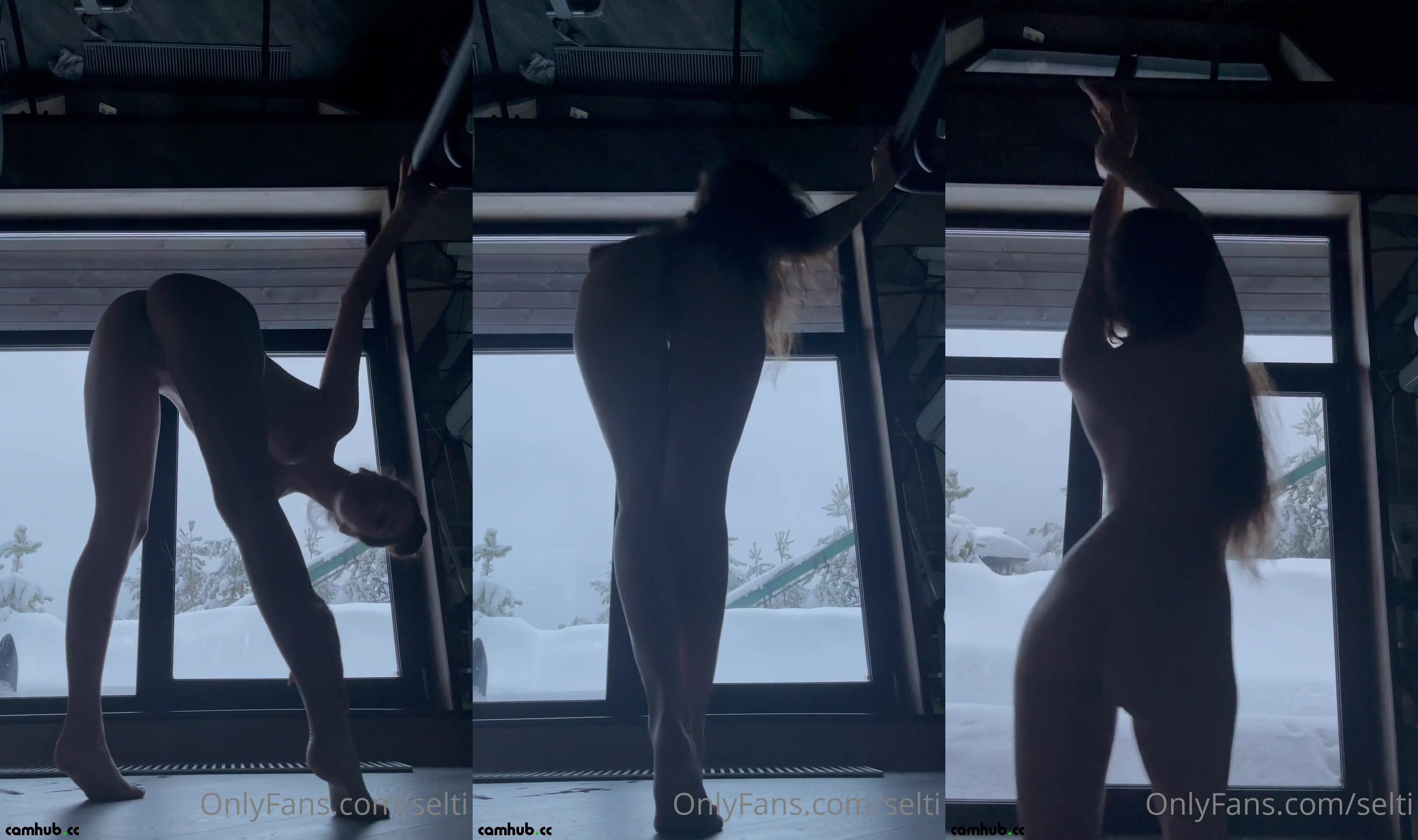 Seltin Sweety Strips Naked Showing Her Perfect Curves In Front Of Snowy Window