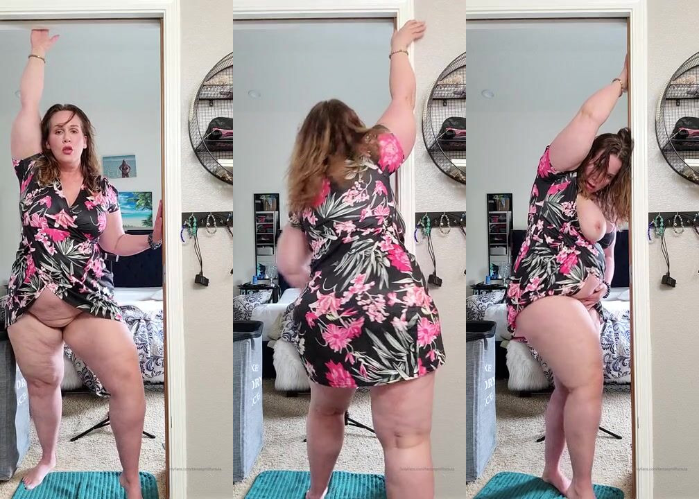 Curvy goddess Ursula Andreia teases in a floral dress, showing off her thick thighs and juicy ass in this seductive mirror video.
