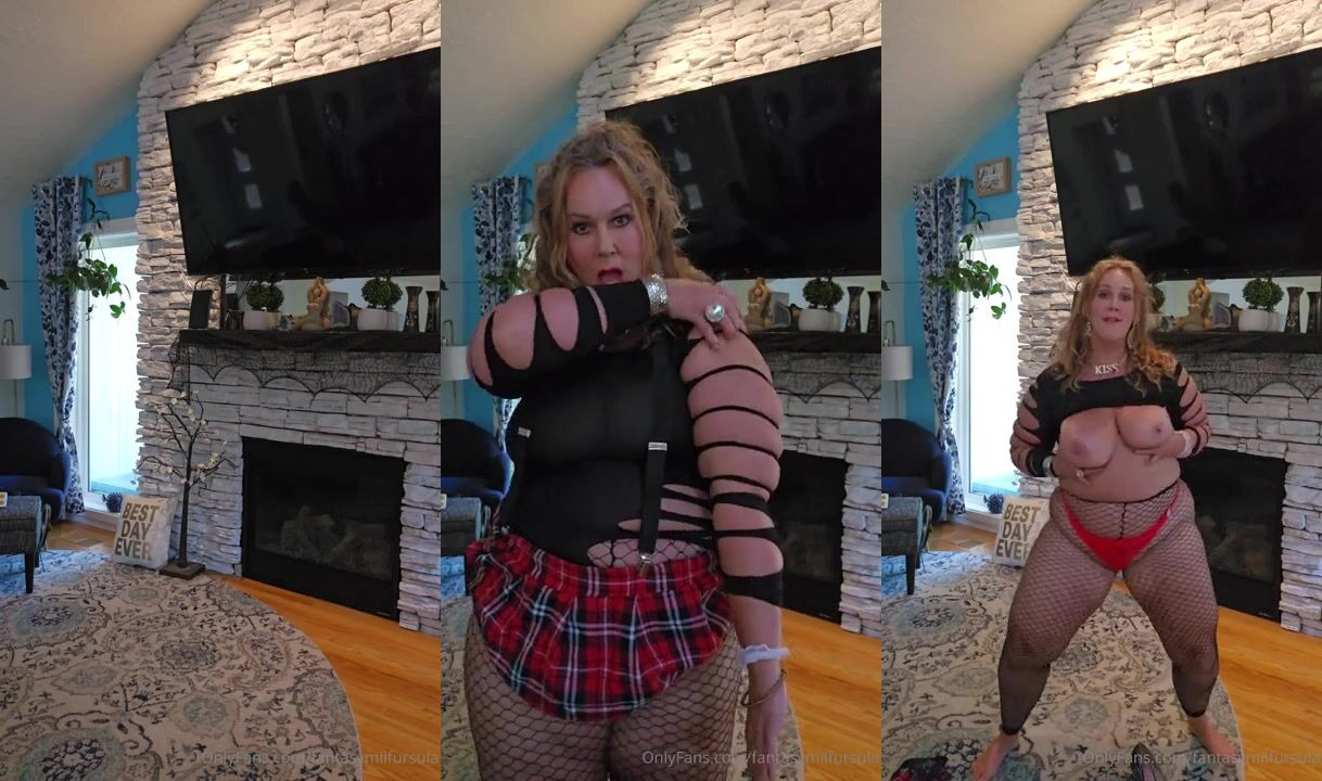 Ursula Andreia aka fantasymilfursula OnlyFans Curvy Goddess Schoolgirl Tease in Fishnets and Red Thong