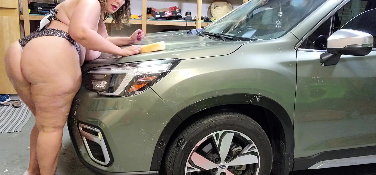 fantasymilfursula OnlyFans Curvy Goddess Washing Car in Bikini Showing Huge Tits and Ass