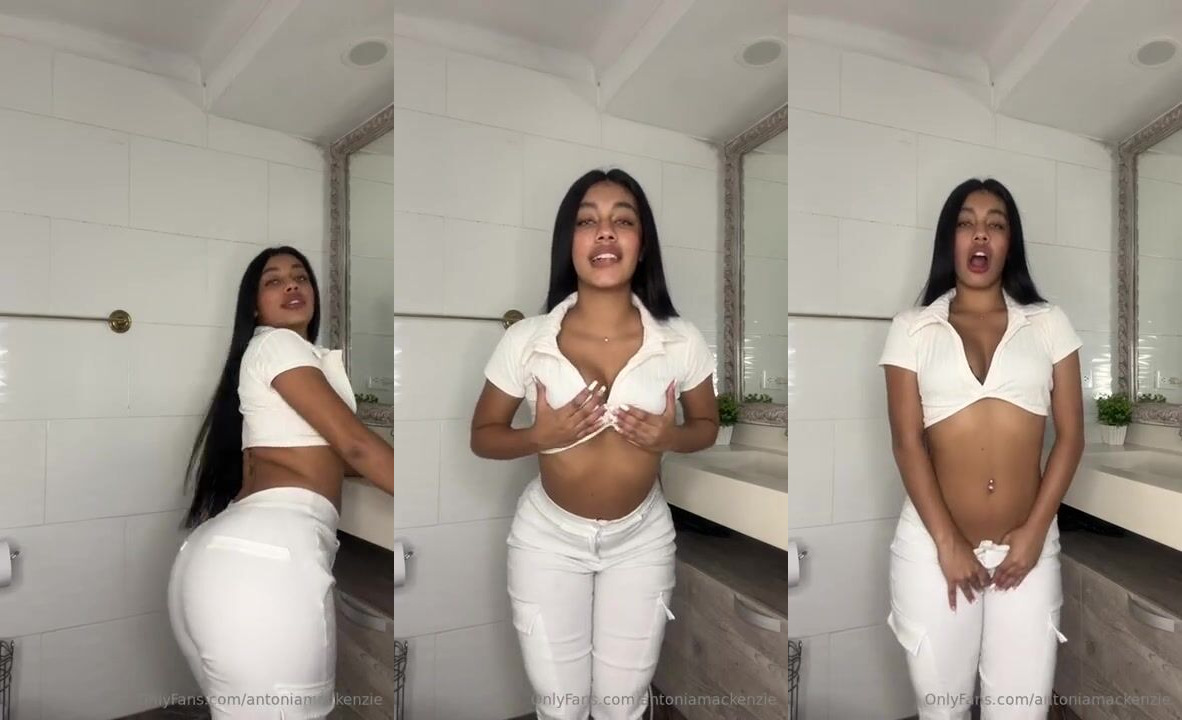 Ebony babe Antoniamackenzie teases in a white crop top, showing off her perky buttocks in this steamy OnlyFans video.