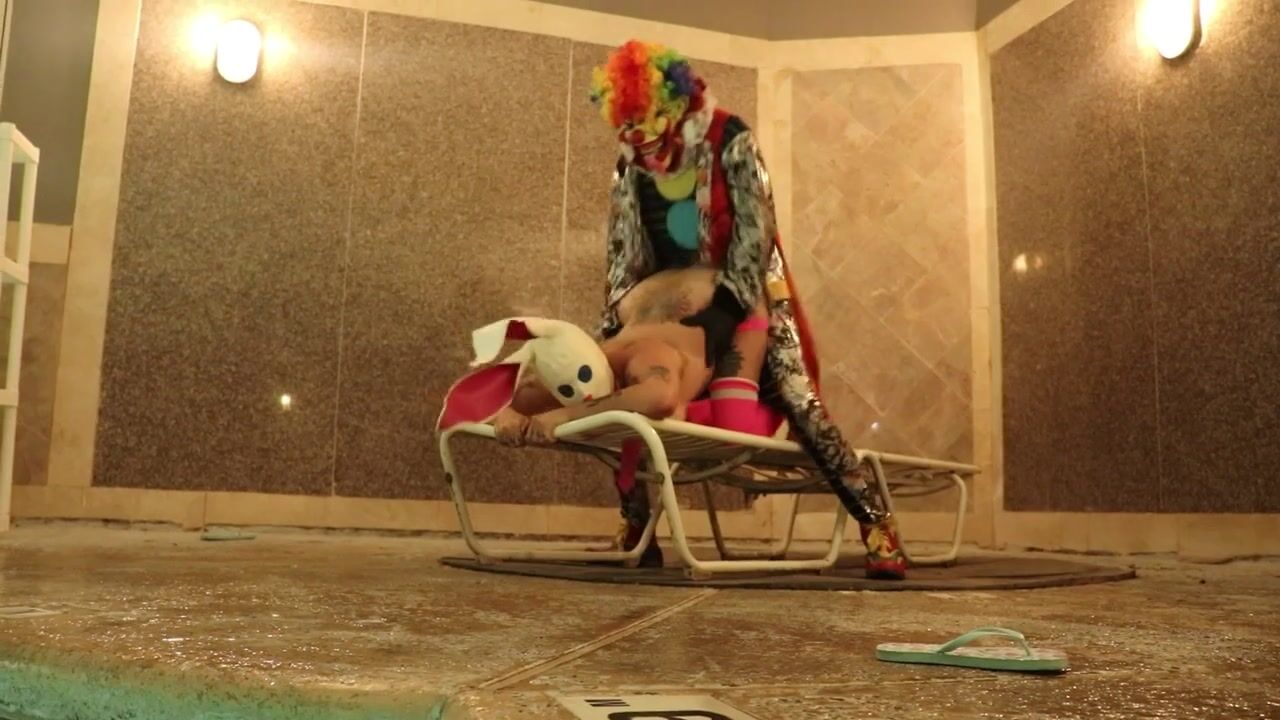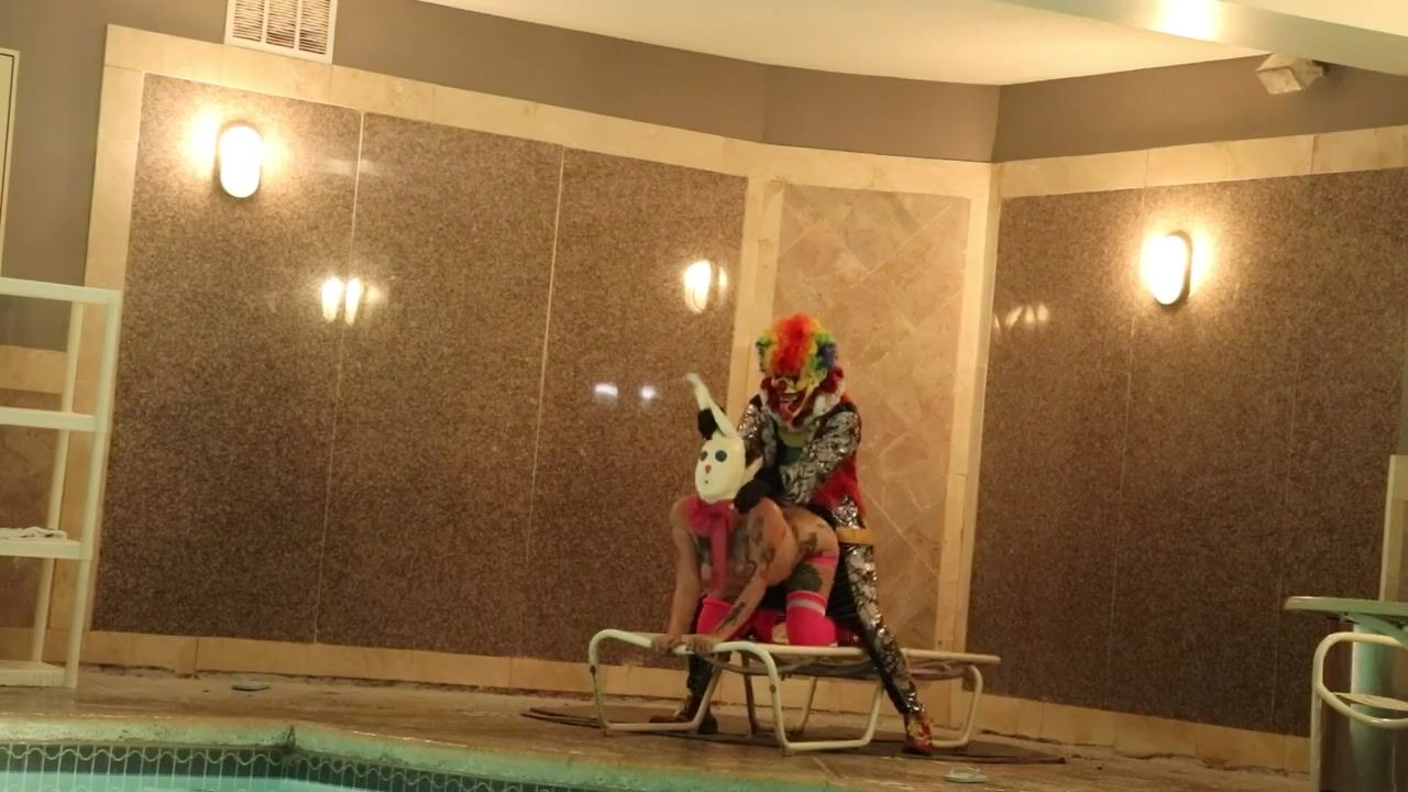 GIbbyTheClown takes the Easter Bunny for a wild ride in this public pool fuck fest video — costumes on, inhibitions off, and pure action in every thrust.