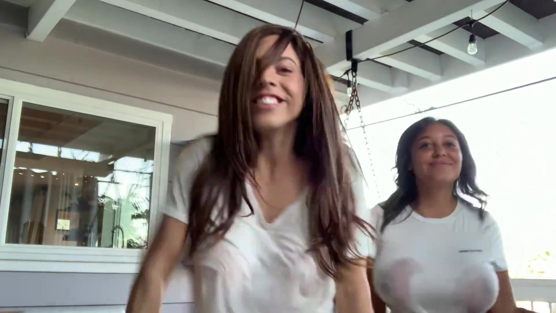 Danielley Ayala and Emily Cheree get naughty and tease in a wet T-shirt contest caught on a leaked OnlyFans video