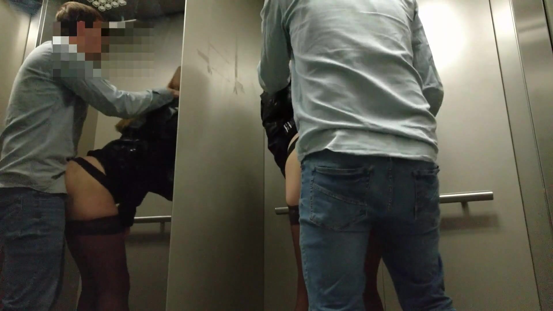 Voyeur couple does risky public porno in an elevator
